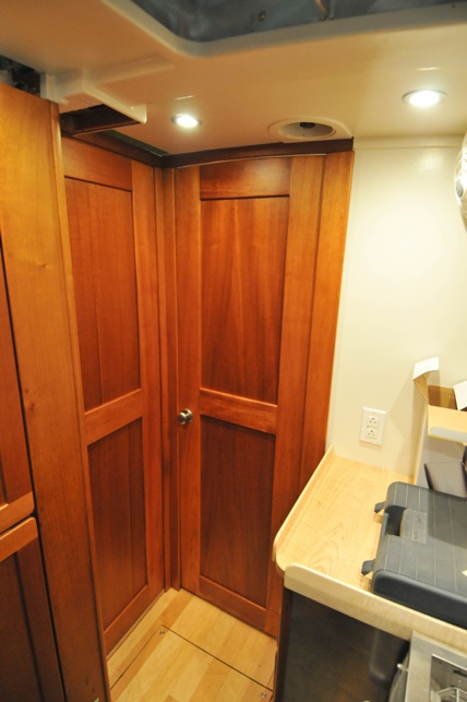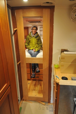 Of course, in the real world (as opposed to the Blogosphere) things don’t always work out perfectly at first. Both the master cabin and head door surrounds and hence, the bulkheads, had right and left sides slightly out of plane. My doors were dead flat. So they contacted the door stops at just one area. A hand shoulder plane quickly took the required 1/8” off the stop, a bit of varnish and hey, presto, no one’s the wiser. The next to last job was to install the door knob (aka entry set) and mortise in the latch strike box. The magnetic latch really work well, I used Newfound Metals non-rattling door holders on all three doors. I was very satisfied with these doors, especially the fact that they had no twist to them. The last part of the project was to put that big fat checkmark next to the line item on the master To Do list: Cabin Doors-DONE!